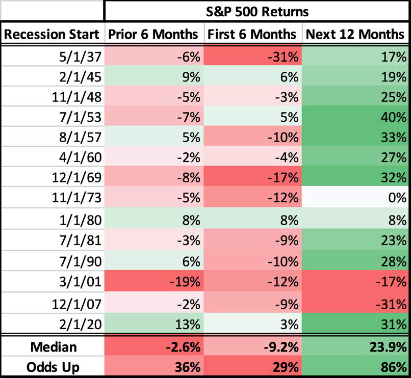 I believe that taking advantage of the post-recession rebound is the most important priority during a recessionary cycle. Trying to avoid modest early-recession losses is not worth the risk of missing large post-recession rebounds on average. Investors should figure out how to be fully invested by the time optimism bottoms out and the stock market reverses higher.